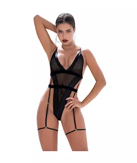 Lavish Striped Mesh Lace Bodysuit - S