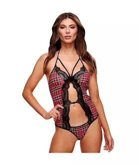 Schoolgirl Plaid Strappy Teddy And Tie