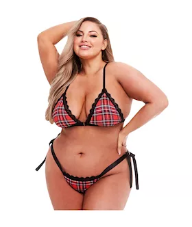 Schoolgirl Plaid Bra And Thong Set